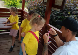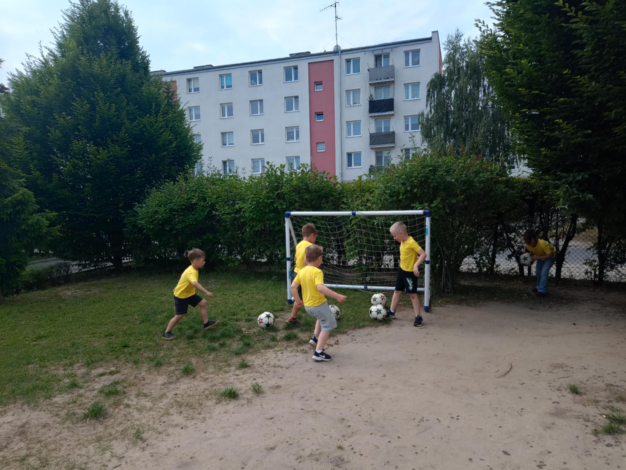 Pszczółki podczas zawodów sportowych (mecz piłki nożnej) w ogrodzie przedszkolnym